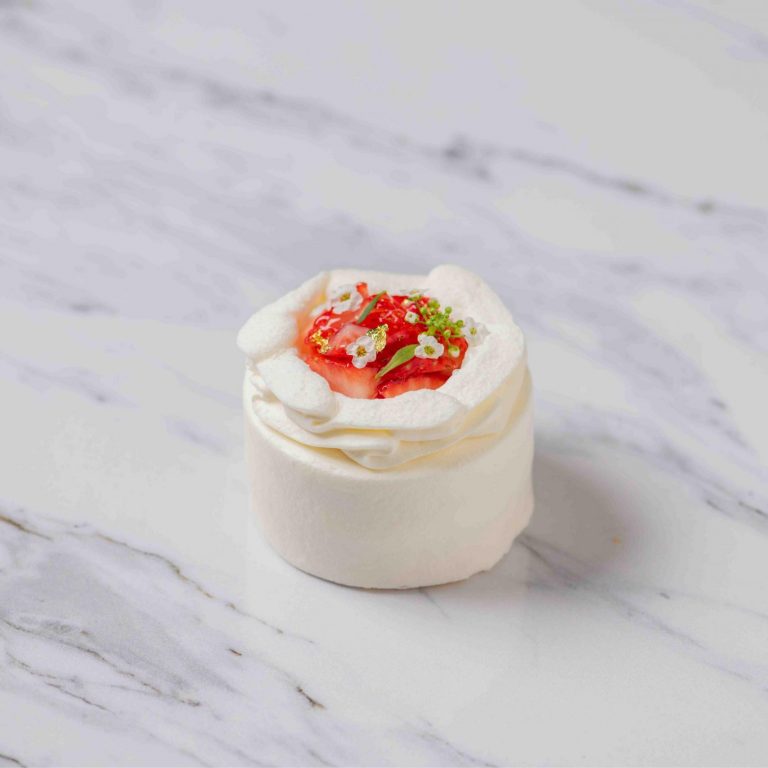甘さは控えめのシャンティに、ふわふわのスポンジ生地。フルーツは旬の苺をたっぷり使用したショートケーキ。