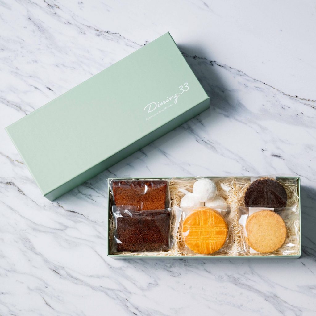 “Dining 33 Pâtisserie à la maison” -patisserie attached with “Dining 33”- serves a variety of fresh western sweets for special-day use and baked sweets suitable for corporate gifts. The chef-patissier who has been supporting Chef Mikuni for long years uses his knowledge of “Mikuni-ism” and skills to make sweets suitable for this new place.